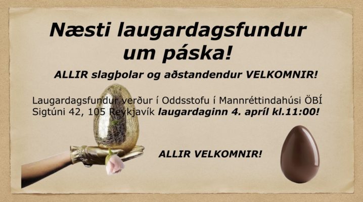 REYKJAVÍK – FÉLAGSFUNDIR OPNIR ÖLLUM – KAFFI Á STAÐNUM!